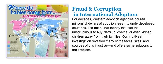 This page includes links to investigative journalism related to transnational adoption. Some of these links will require subscriptions to access the full story. As with the other aspects of this site, this page will be an evolving project as new stories are uploaded.