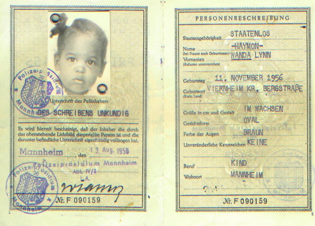 Rosemarie Peña’s passport. Sources: Black German Cultural Society, Wikipedia, Rutgers University profile of historian Rosemarie Peña, Transatlantic adoption & “brown babies”